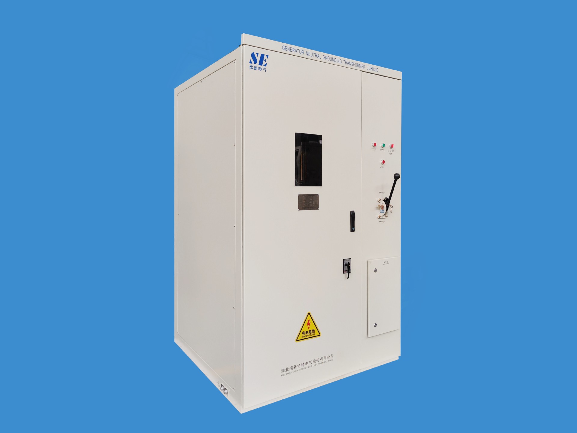 發電機中性點接地方式的選擇,對于發電機安全運行至關重要。它直接影響到定子單相接地故障電流的大小,定子繞組的過電壓倍數,定子接地保護的實現。發電機中性點高阻抗接地柜能將發生單相接地故障時的接地故障點電流限制在10-35A以內,同時能有效抑制發電機健全相過電壓2.6倍以下,并能提供電壓,電流等保護信號,確保發電機的安全運行.