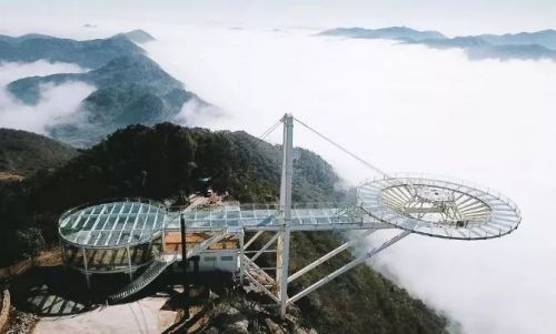 在天空之城游客中心乘坐纜車往上,纜車長約1500米纜車,沿途風景一覽無余。索道上景區的核心景點天空之鏡玻璃觀景平臺,是世界上大的玻璃底觀景平臺,有著世界吉尼斯紀錄的加持,這里海拔正好是520.1314米。